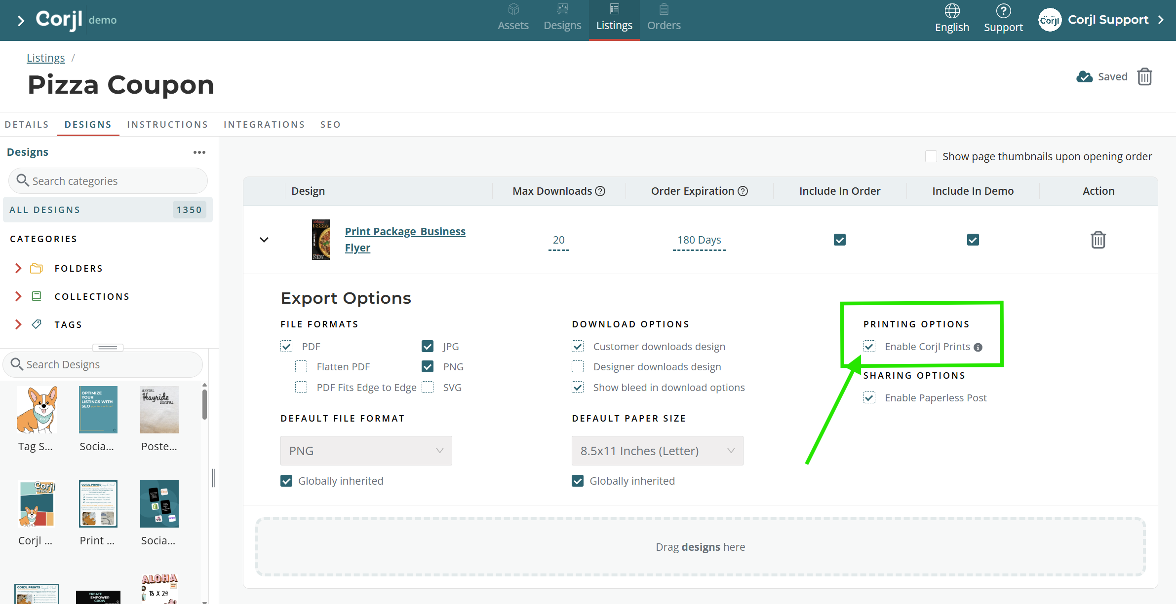 You can disable Corjl Prints for individual designs in a listing at any time: