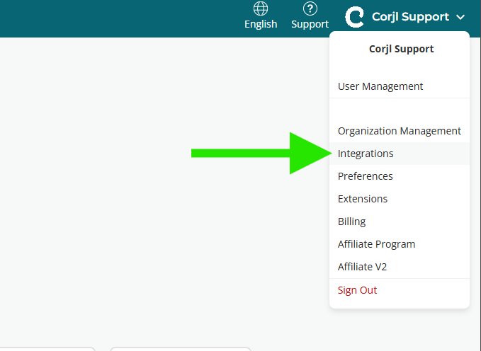 - From the Corjl dashboard, click Account Settings (gear icon).
