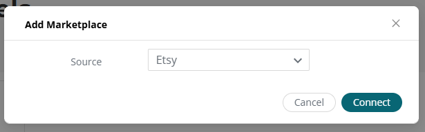 - In the modal select Etsy from the Source Dropdown and click Connect