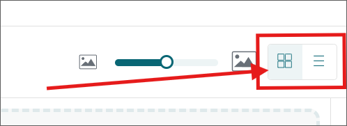 Images default to the Thumbnail View and Fonts default to the List View. To change to a different View, use the buttons in the top right of the upload area shown below: