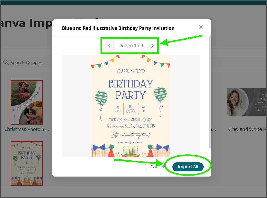 🔍 Step 2: Selecting Your Canva Designs for Import