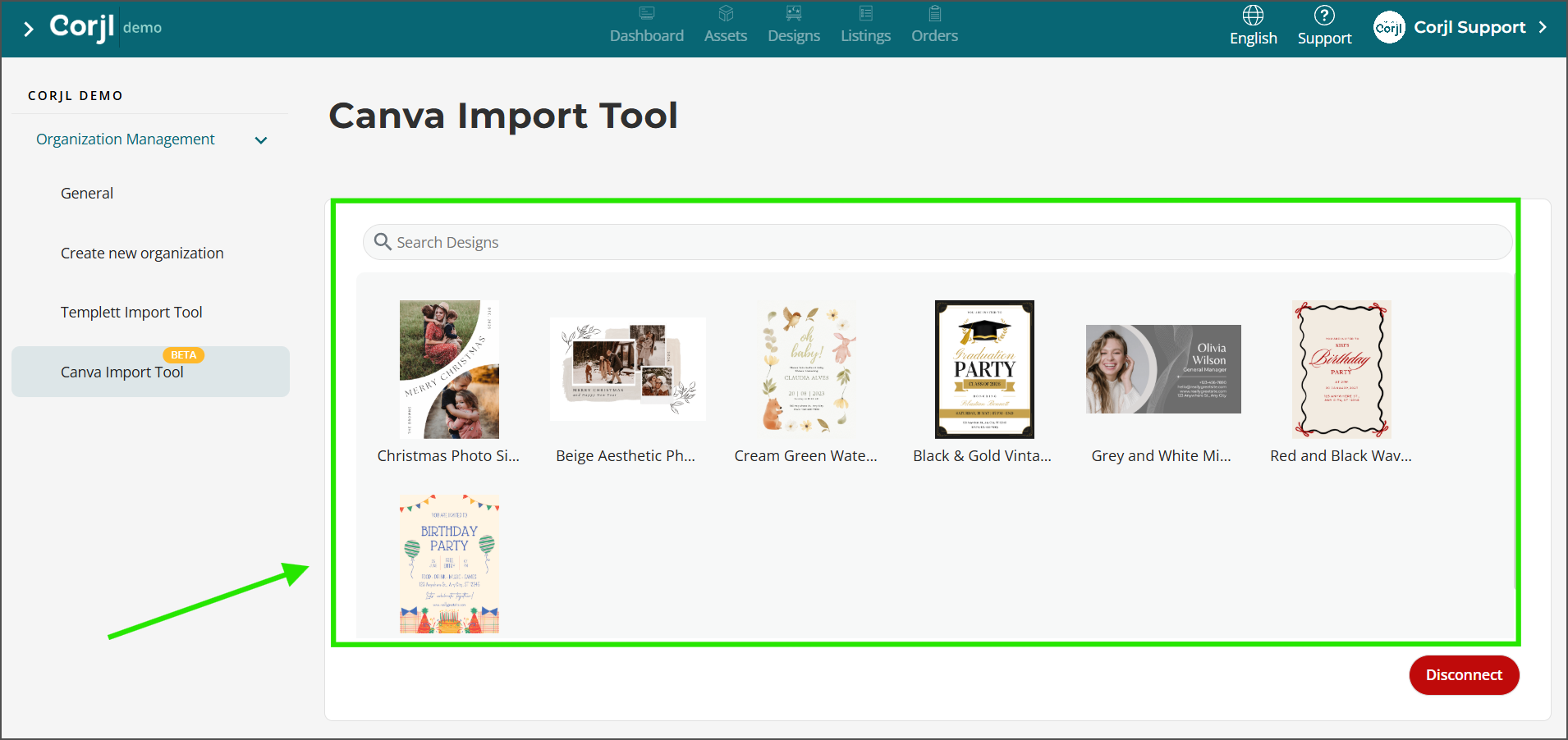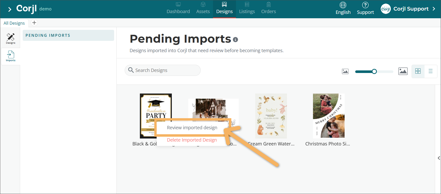 The next step is to move your Canva designs into the Imports section of your Corjl account for review.