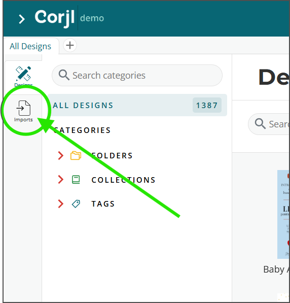 - You can now find your Imported Canva Designs in the Imports section of your Designs page. Click on the Imports tab that now shows in the left menu area to view and approve your designs.